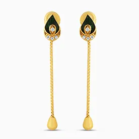 22ct Gold Leaf & Chain CZ Drop Earrings